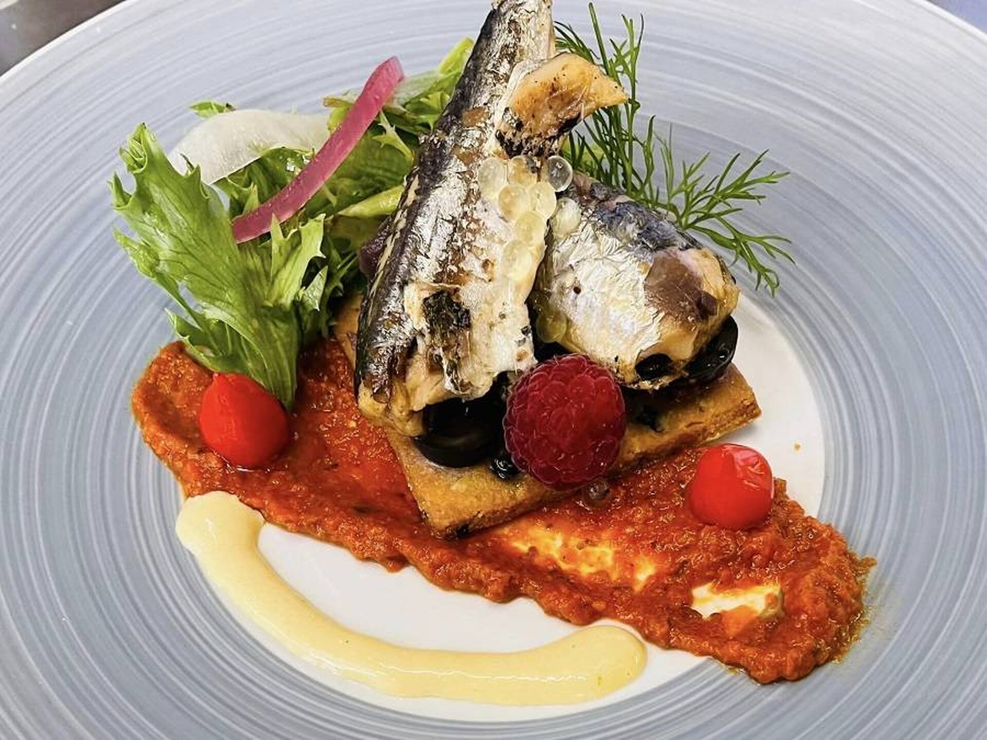 Sablé aux olives noires, sardines grillées de Bretagne,