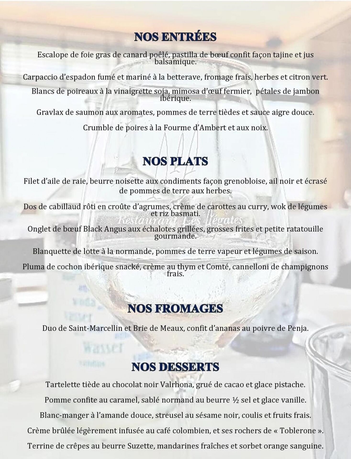 Le chef vous présente sa nouvelle carte toute juste sortie aujourd’hui ! Découvrez encore de nouvelles saveurs, des alliances surprenantes, cuisinées avec des produits frais dans le respect dès saisons.