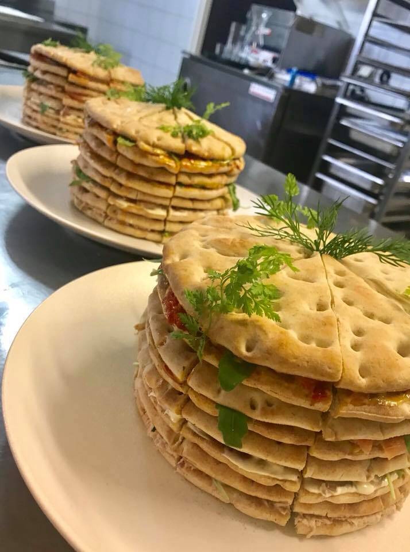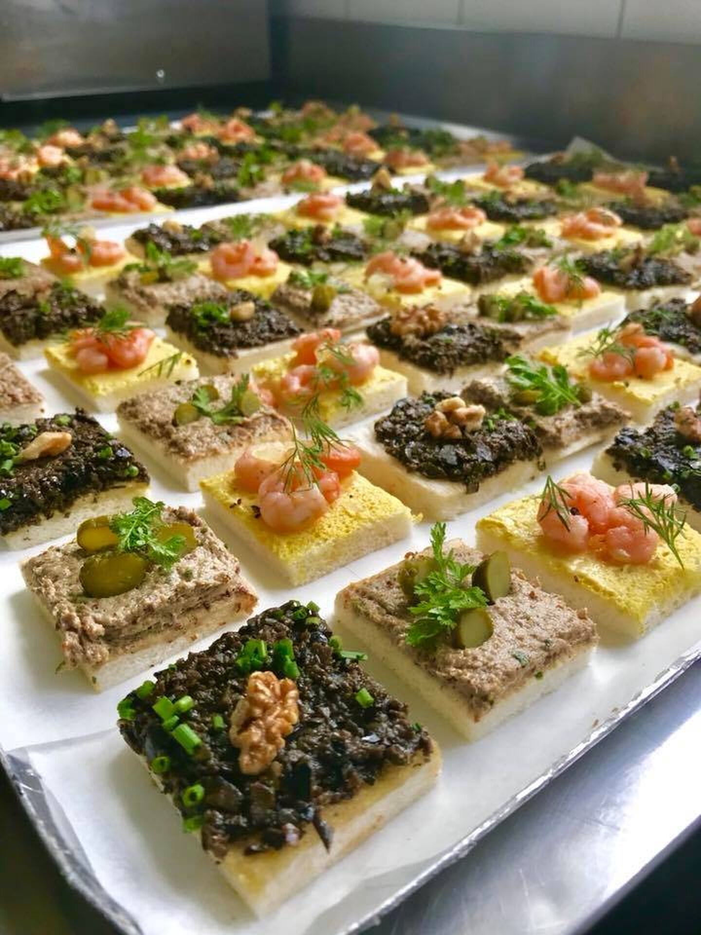 Jambon de Serrano, chorizo, tapenade et rillettes de thon maison sur bruschetta.